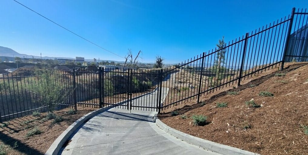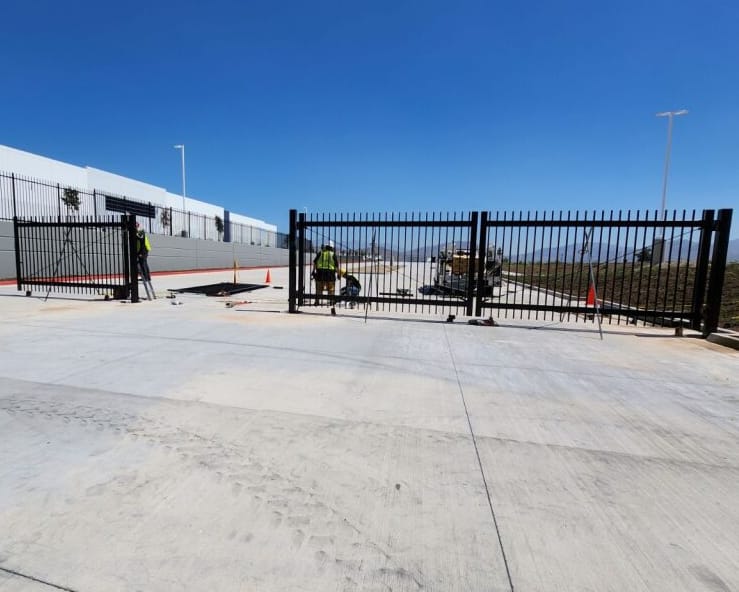 The RCI team is proud to have helped put the finishing touches on the Agua Mansa Business Park in Jurupa Valley. This 4 million SF, state-of-the-art distribution center spans 300 acres, consists of five buildings, and is surrounded by more than 9,000 linear feet of fencing. RCI’s scope included excavating thousands of post holes and furnishing and installing poles, 8-foot wrought iron fence panels, and gates across the rugged Inland Empire terrain.