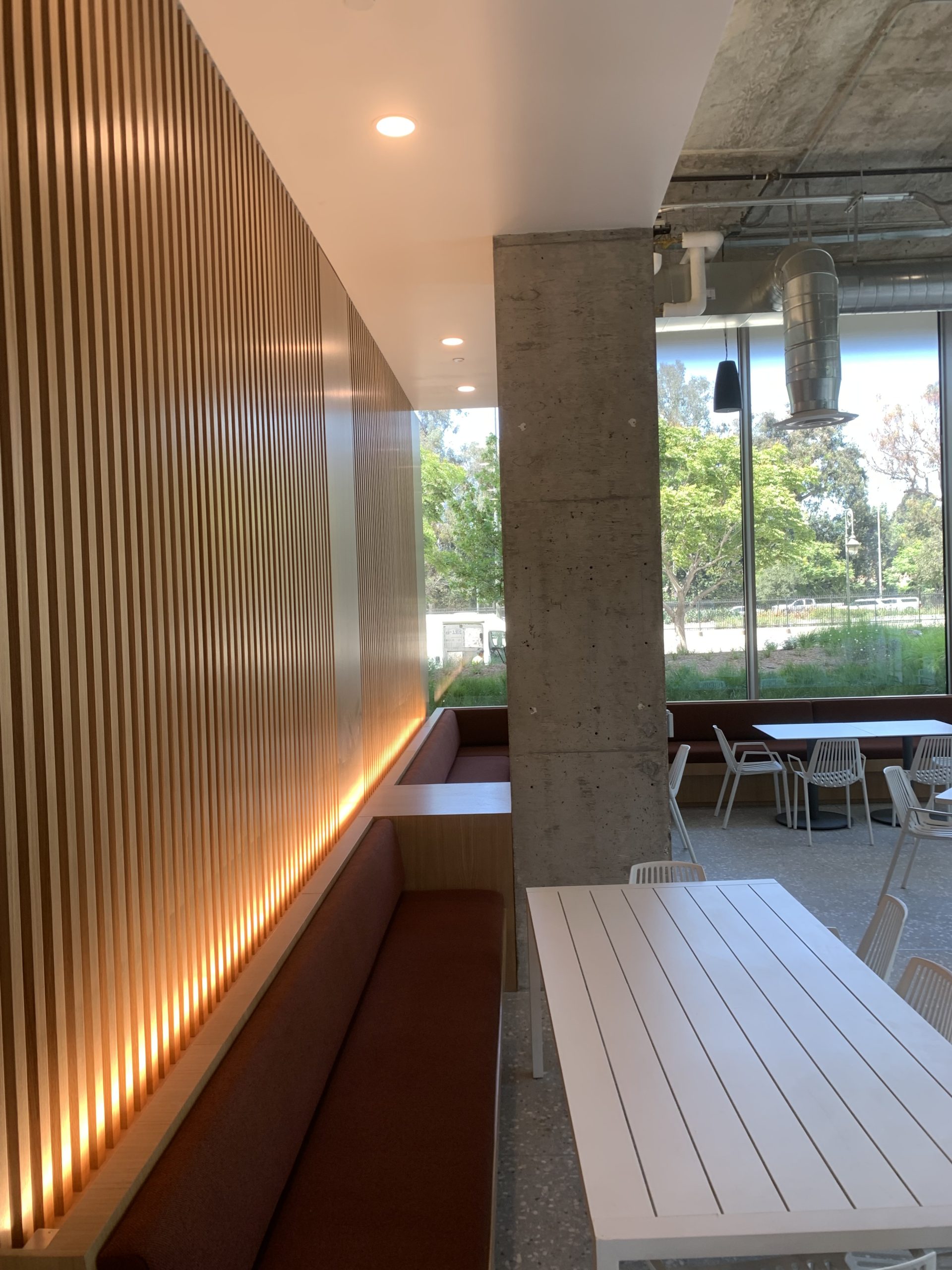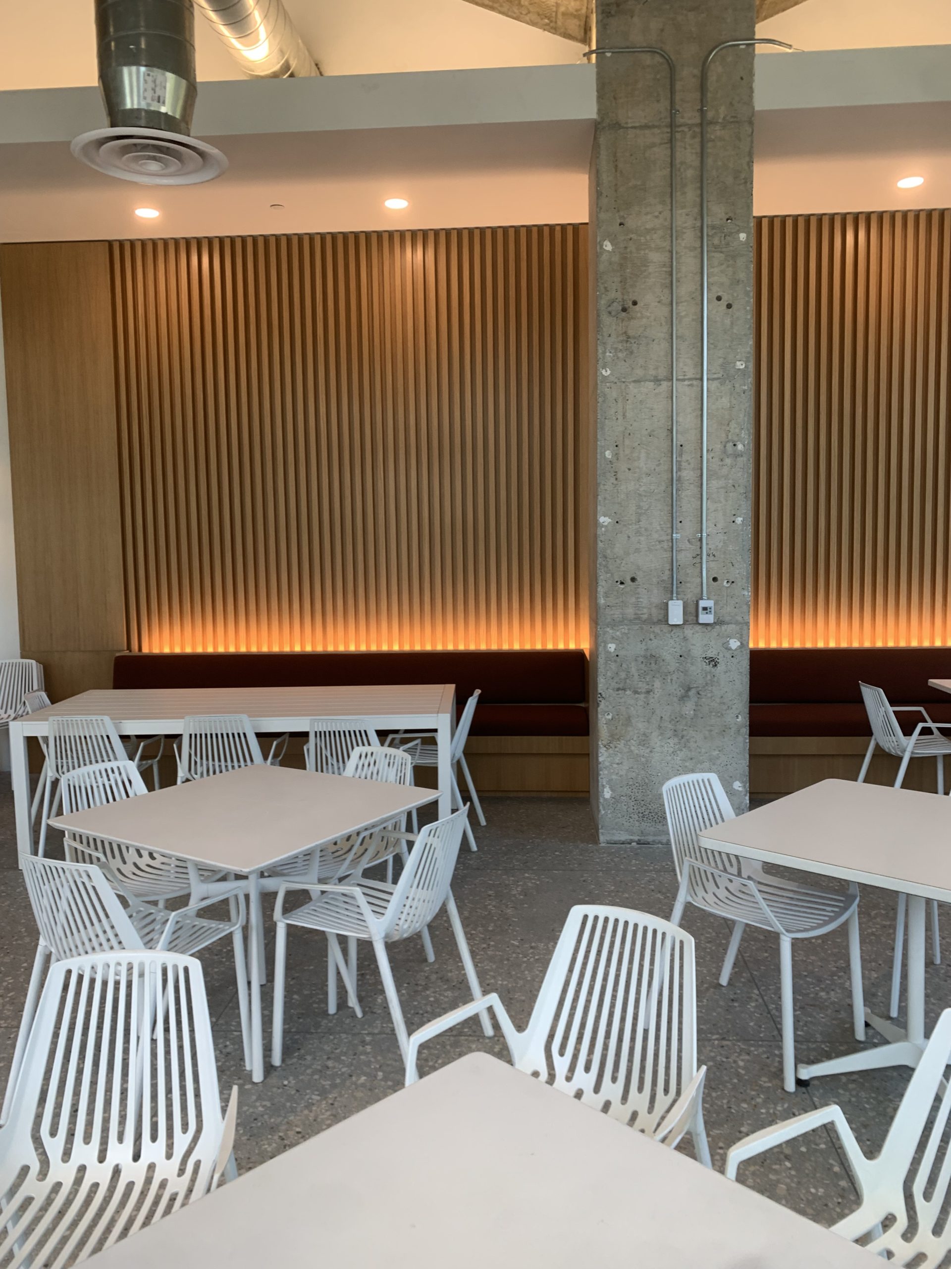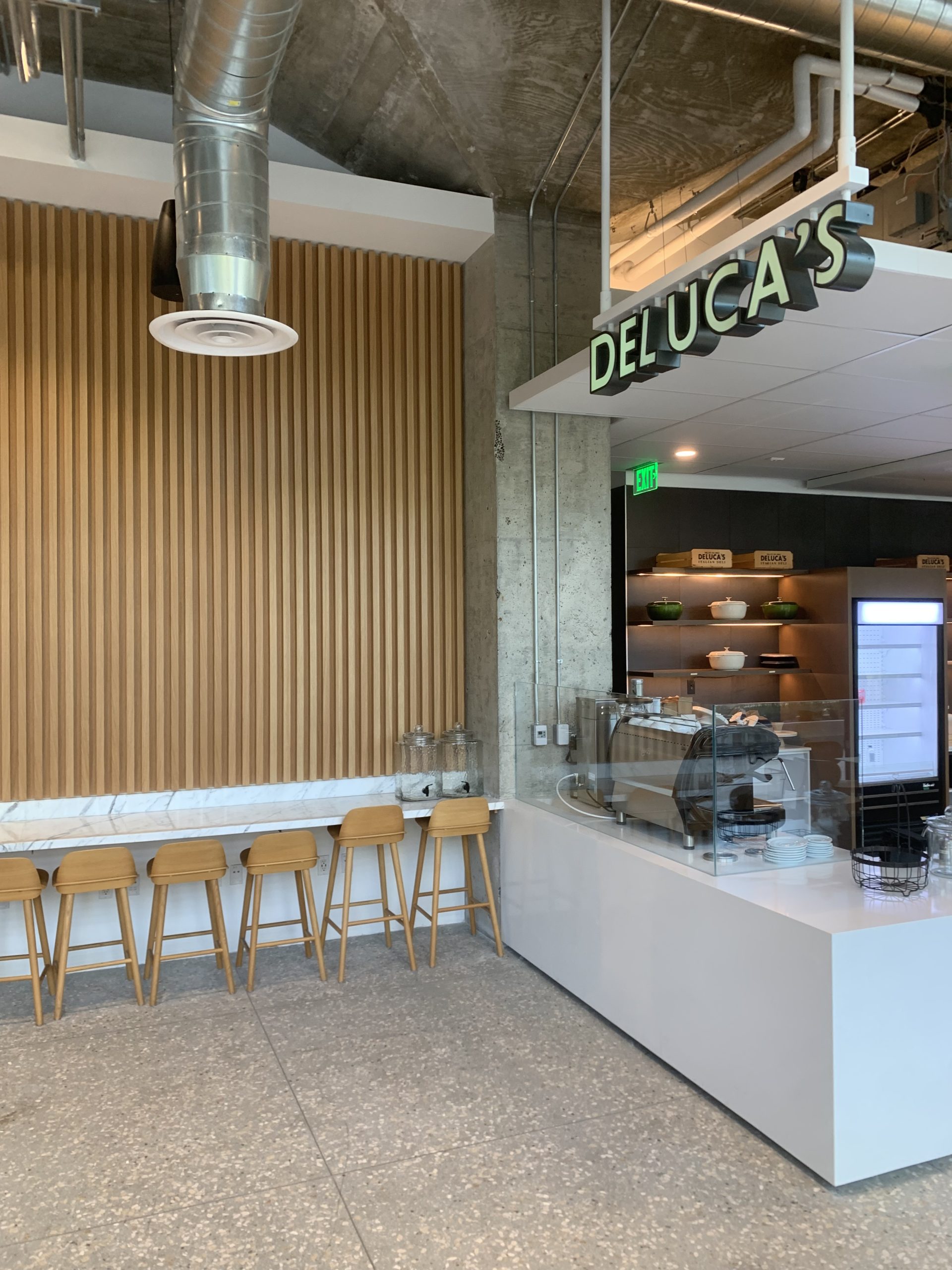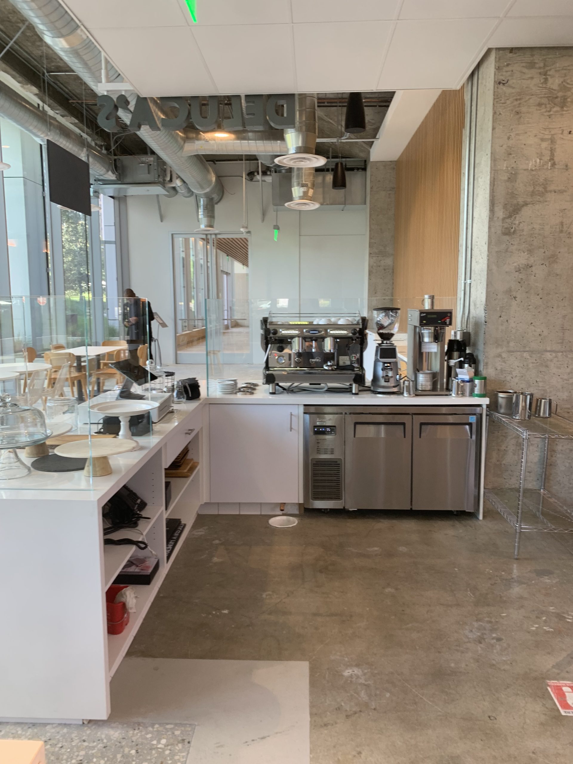 RCIs scope included fabricating and installing the specialized trim & millwork, custom wood flooring. and polished concrete & countertops throughout the cafe.